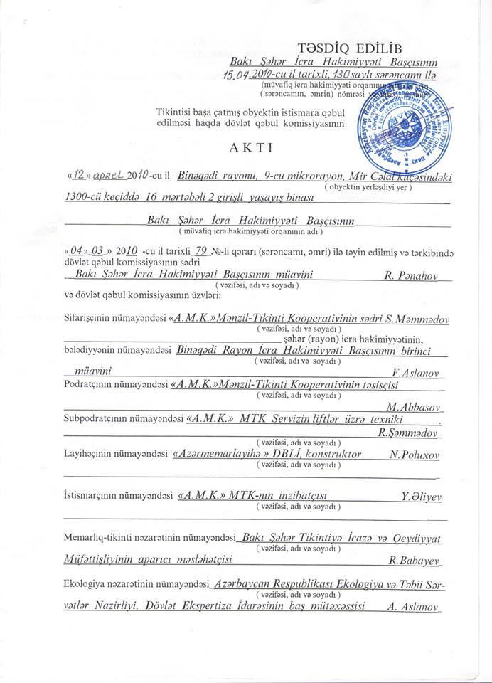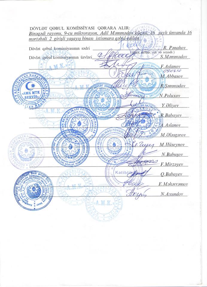 Binəqədi rayonu, 9 mikrorayon, A.Məmmədov küçəsi 16 ünvanında 16 mərtəbəli yaşayış binası "A.M.K." MTK tərəfindən inşa edilmişdir.